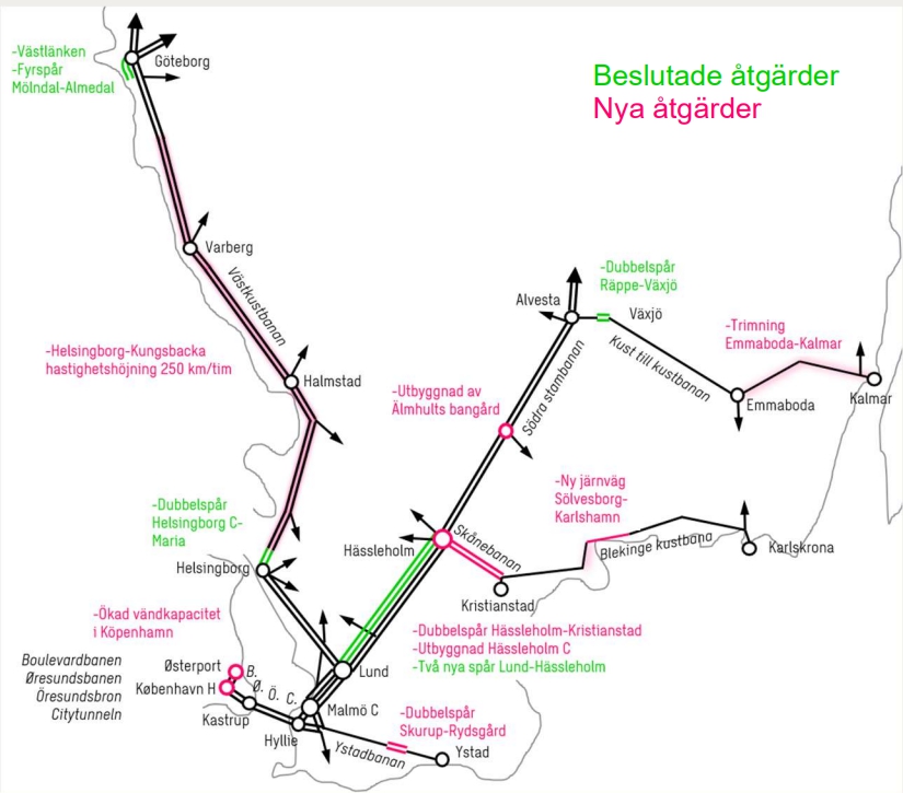 Öresundståg utvecklar sitt tågnät och spårstandarden förbättras, vilket framkommer av deras TRAFIKSTRATEGISK PLAN 2030-2040. Från Alvesta och upp mot region Jönköping är det en vit fläck då regionen inte är medlem i detta samarbete.